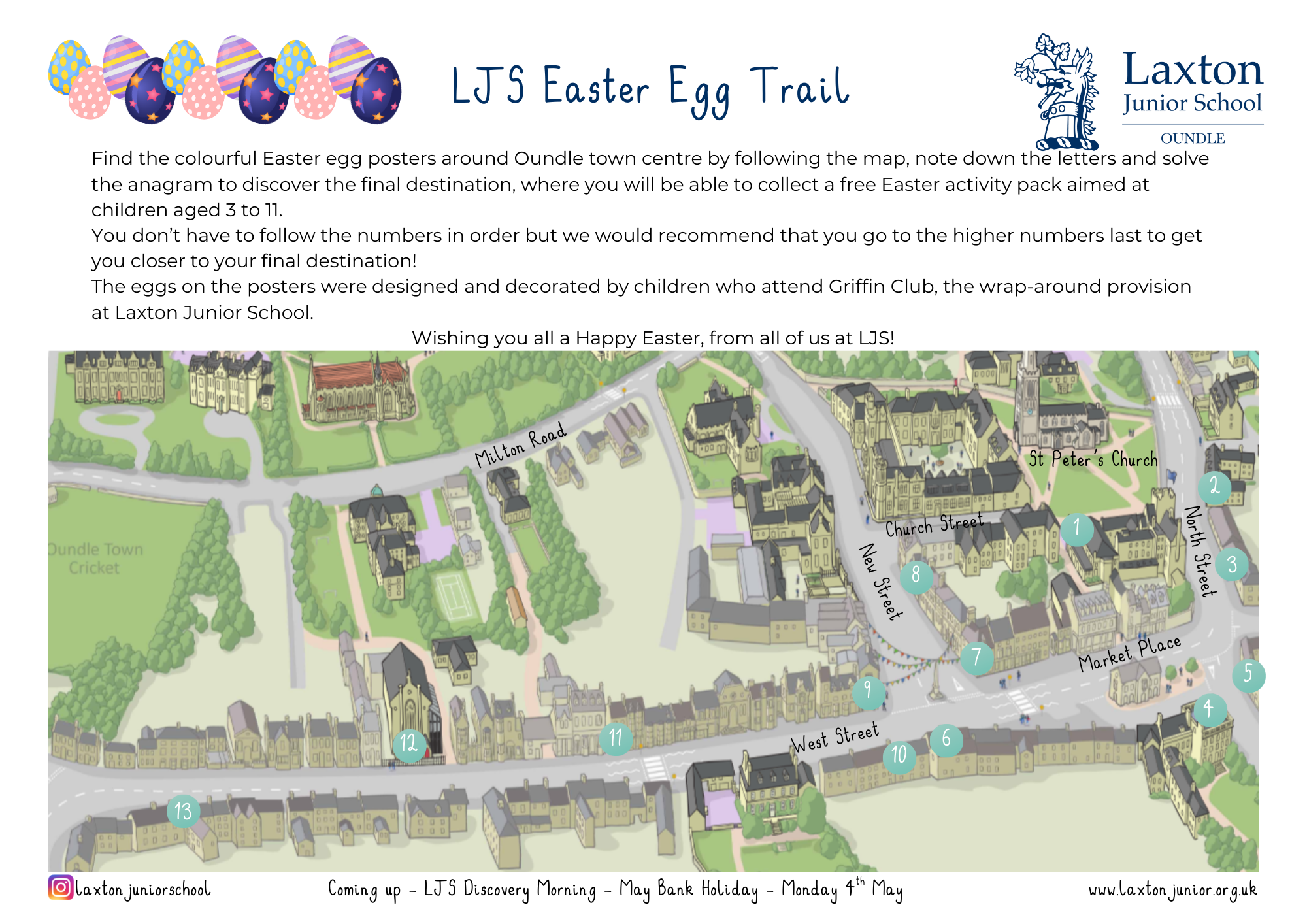 We are proud to launch our first Easter Egg Trail for all our LJS community. The trail is free to enter, so if you are looking for a bit of fun over the Easter holidays, then look no further than our trail around the beautiful Georgian streets of Oundle.